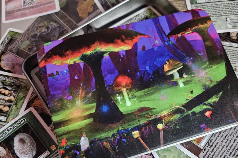 Our deck of cards is designed to make mushroom identification fun and easy. Each card features a different mushroom with detailed information about its appearance, habitat, and edibility. Whether you're a seasoned forager or just starting out, the Daxina Mushroom Deck is a valuable resource for anyone interested in Learning the world of fungi.