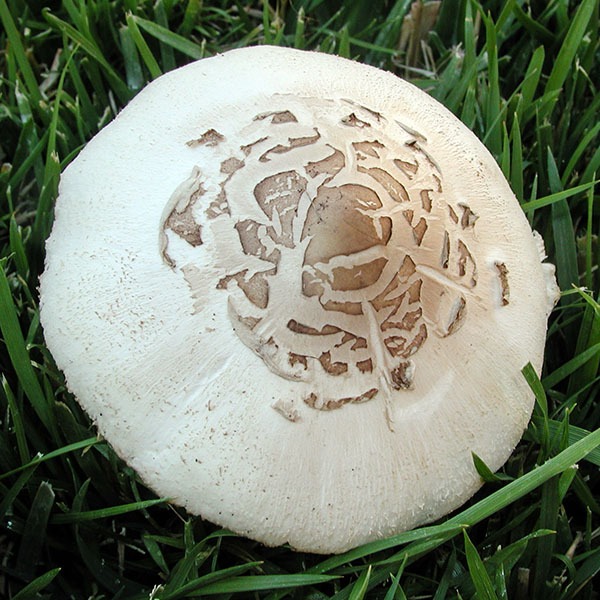 1. True parasols (Macrolepiota procera): This mushroom is similar in appearance to Chlorophyllum molybdites but has white spores instead of greenish-brown spores. The cap of the true parasol is also more yellowish-brown in color and has larger scales.