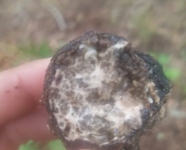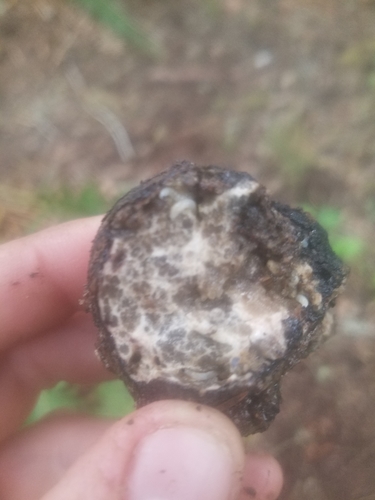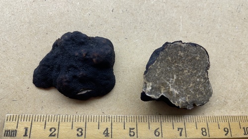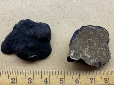 Fruiting Body: Subterranean, rounded to irregular, typically 2–7 cm across. Peridium (outer surface) dark brown to nearly black, smooth to finely warty.