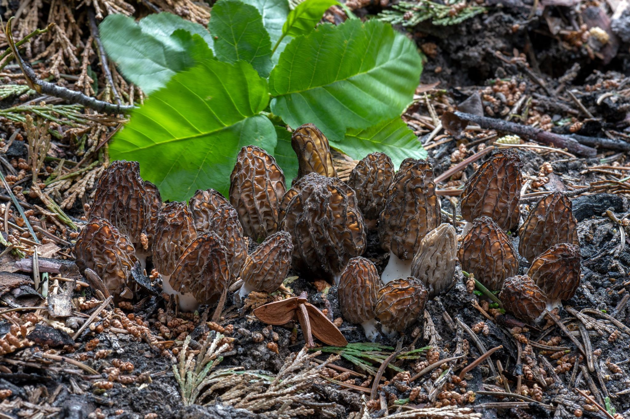 5. Habitat: Morchella esculenta is commonly found in various habitats, including woodlands, forest edges, and grassy areas. It often appears in the spring season, particularly after rain or in moist conditions. It forms symbiotic relationships with certain tree species, such as ash, elm, and apple trees.