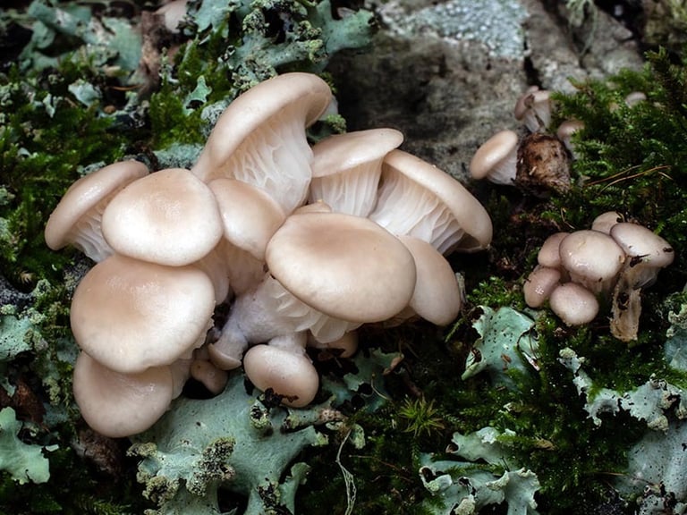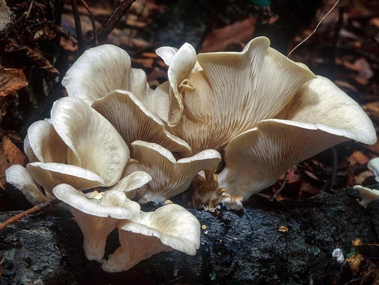 5. Habitat: Pleurotus ostreatus is commonly found growing on dead or decaying wood, particularly hardwoods such as oak, beech, and poplar. It is a saprophytic fungus that thrives in a variety of habitats, including forests, woodlands, and urban areas. Oyster mushrooms can also be cultivated on straw or other agricultural waste.