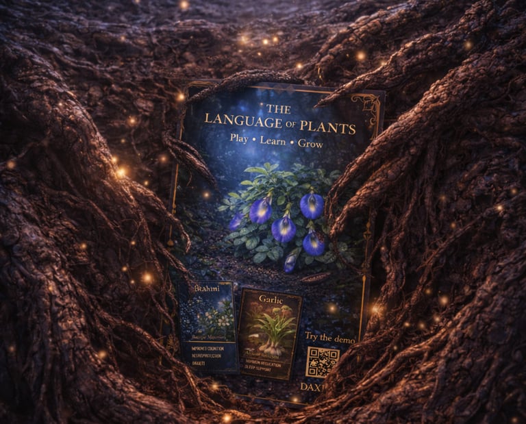 Daxina Cards are a collectible and interactive system designed to teach the relationships between plants, fungi, and human hea